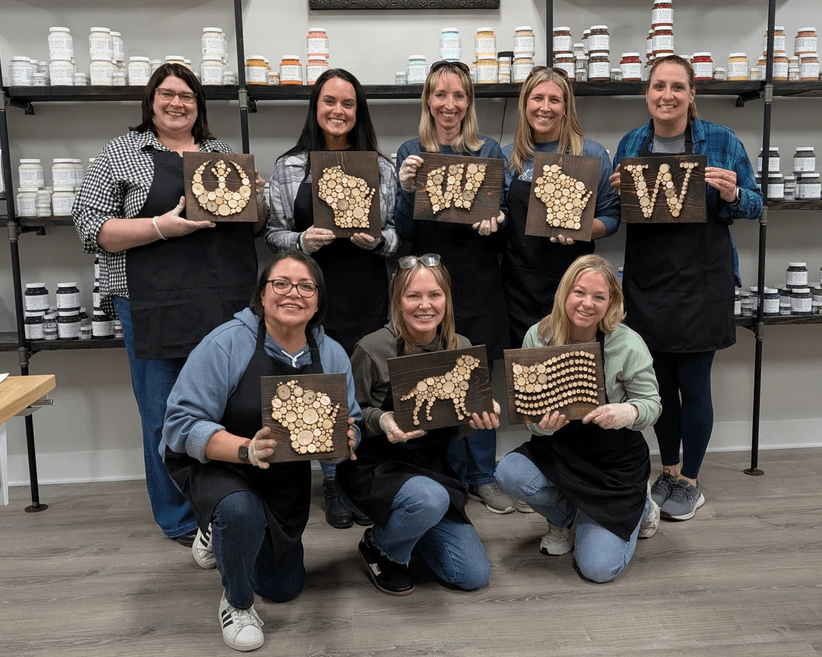 Whether you consider yourself a crafty person or you are completely "design-challenged"... if you can put a puzzle together, you can make Wood Slice Wall Art! Our workshops will help you to realize the beauty in the natural characteristics of raw wood and teach you the tricks and techniques needed for creating your own Wood Slice Masterpiece! We will provide the instruction, the materials, and the FUN! Come alone or with a friend and you are sure to have a great time creating this textured, cozy room decor that is totally unique & perfectly YOU!